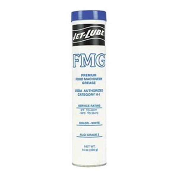 Up to 7 cash back Food Machinery Grease Food Grade FMG 14 oz Cartridge SizeNet Weight 400 grams NLGI Grade 2 Color White Temp Range 0 to 400 Flash Point 430 F Dropping Point 500 Aluminum Complex Base Film Type White Grease Specific Gravity 094 High Water Resistance Provides AdhesiveCohesive Strength to Protect Against Pound-Off. Ingredients andor compounds must comply with 21 CFR parts 182 and 184. 11 oz Aerosol Can Light Amber White.